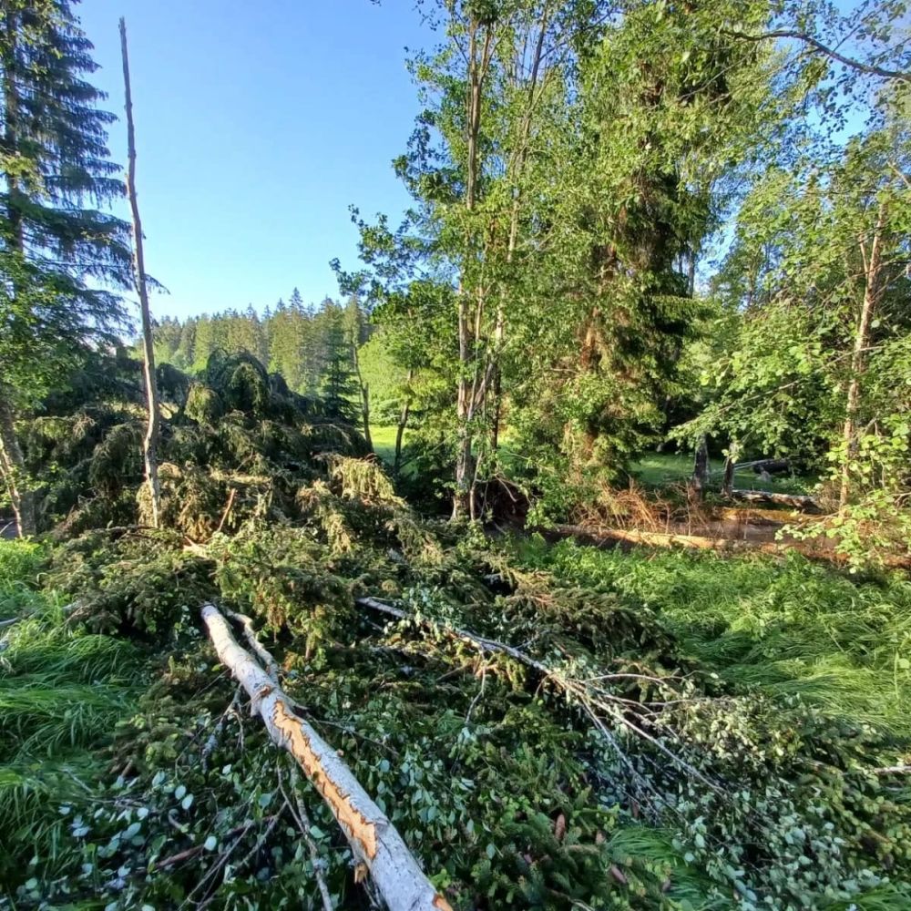 Hierbei handelte es sich um viele umgestürzte Bäume, die die Straße versperrten. Auch ein Hausdach wurde durch den Sturm abgedeckt.