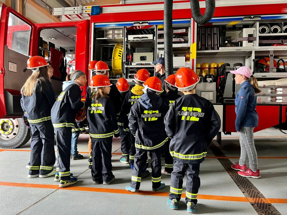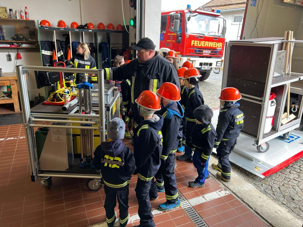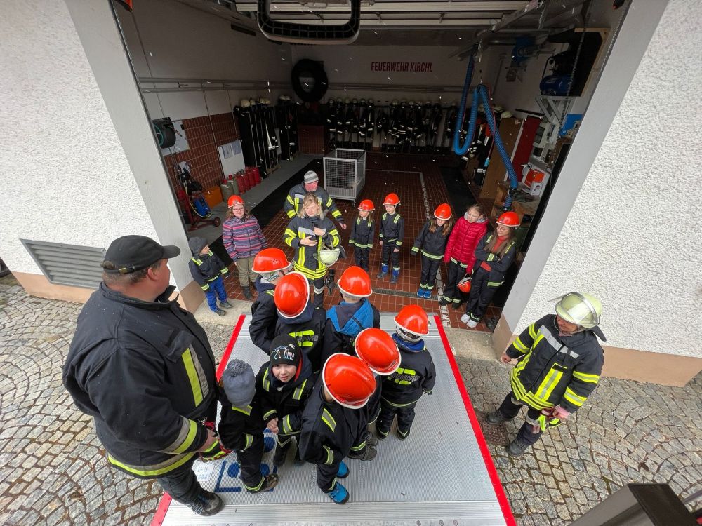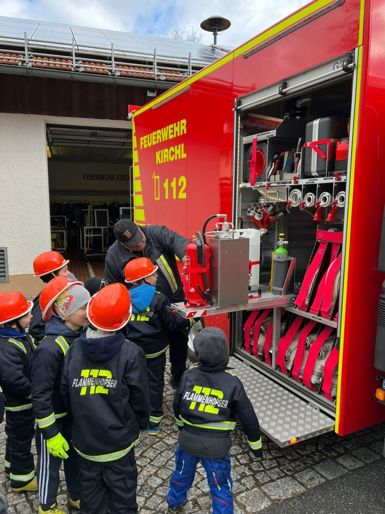Durch den Kommandanten der FFW Kirchl , Stefan Schöneberger wurde uns ihr neues Fahrzeug das TSF- Logistik vorgestellt. Alle waren sehr interessiert und wollten natürlich alles ausprobieren.