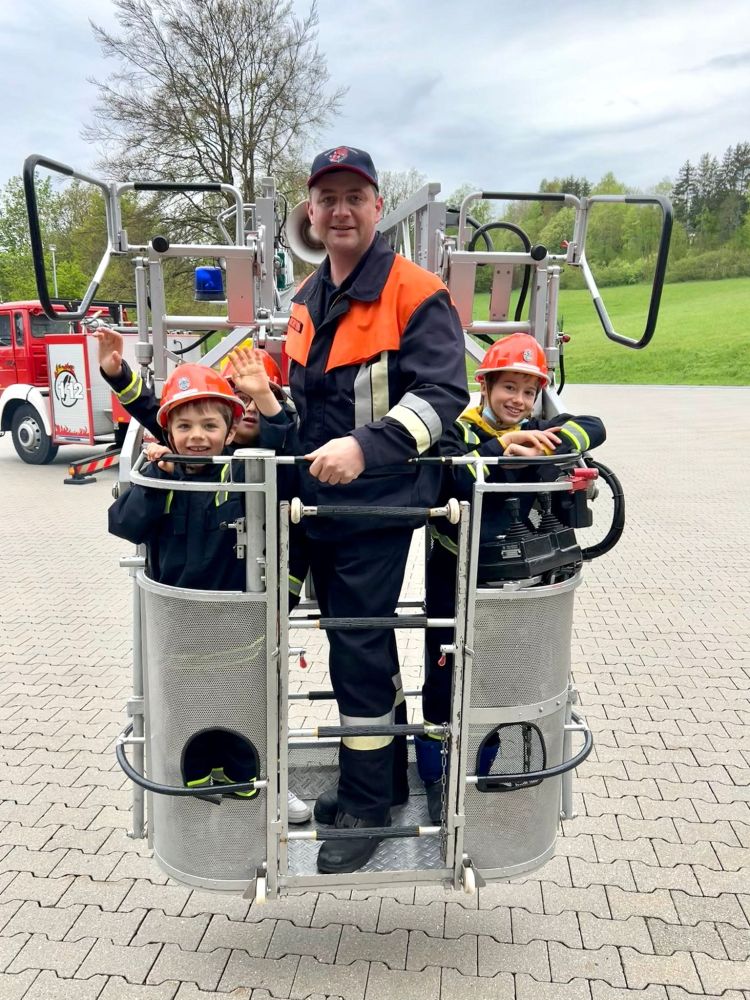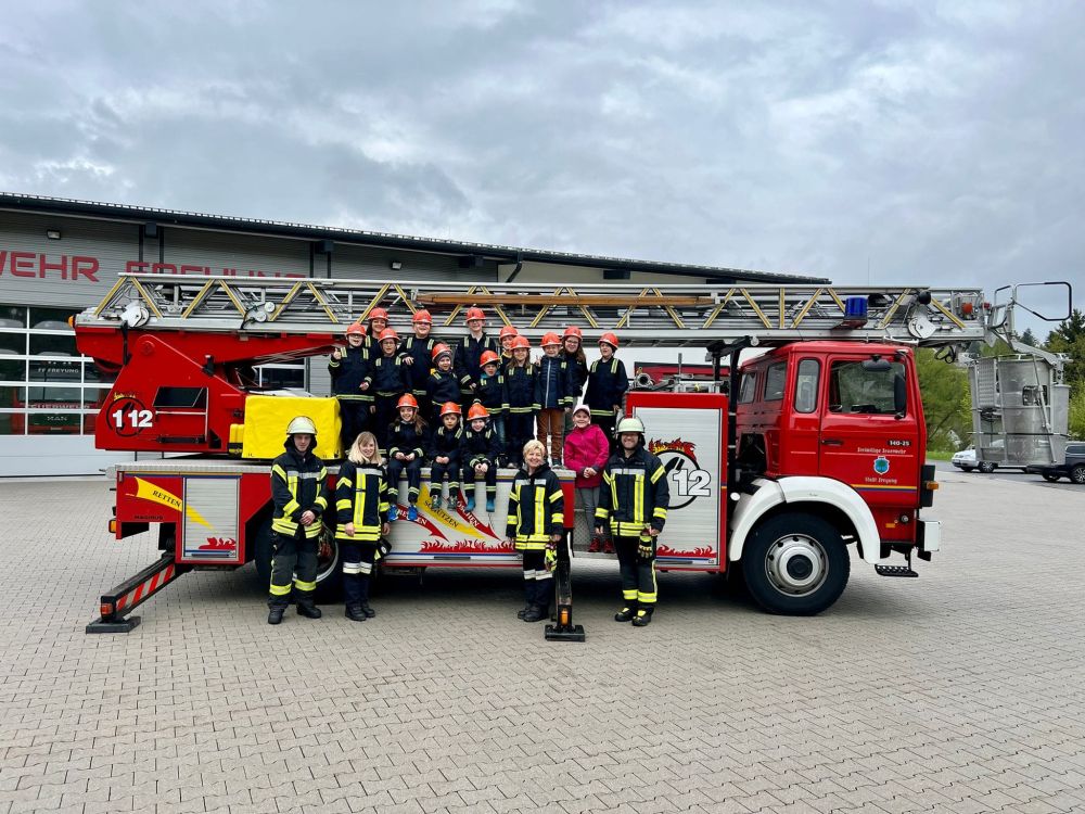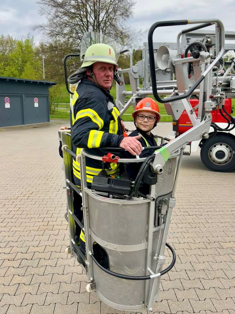 Nach einer kurzen Führung durch das Feuerwehrhaus, durften wir uns alle Fahrzeuge und auch die Schlauchpflegestelle genauer anschauen. Nach einer kurzen Trinkpause kam dann das Highlight des Tages. Jeder durfte mit der Drehleiter hoch hinaus. ?